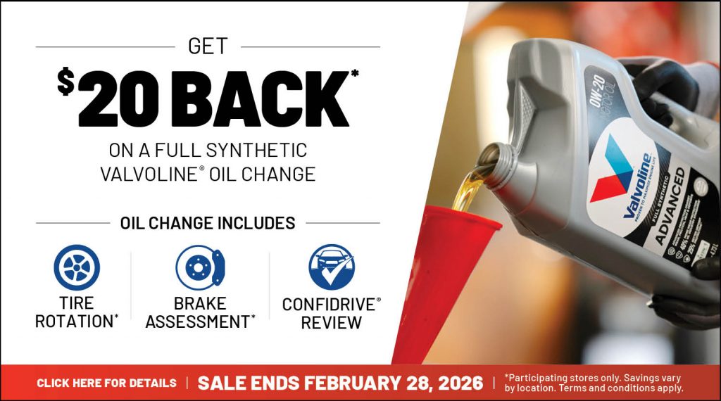 You can now save $20 on a full synthetic oil change*! It’s simple, no sign-up needed, just upload your invoice online to get $20 back!